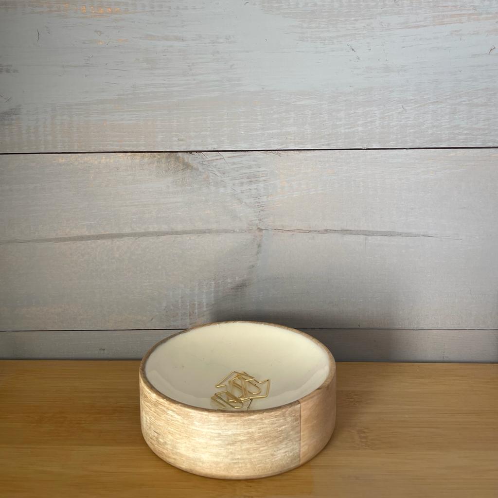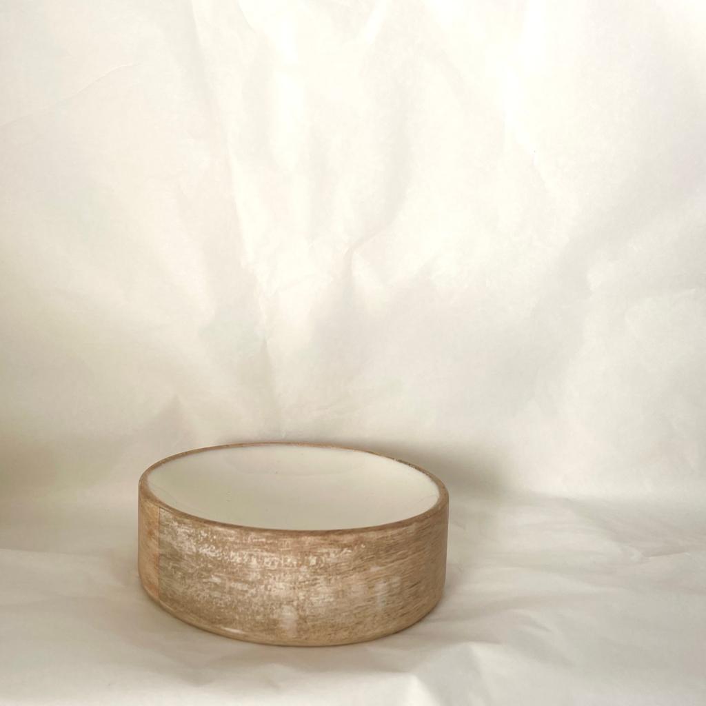 קערה קטנה מעץ עם ציפוי פנימי בלבן