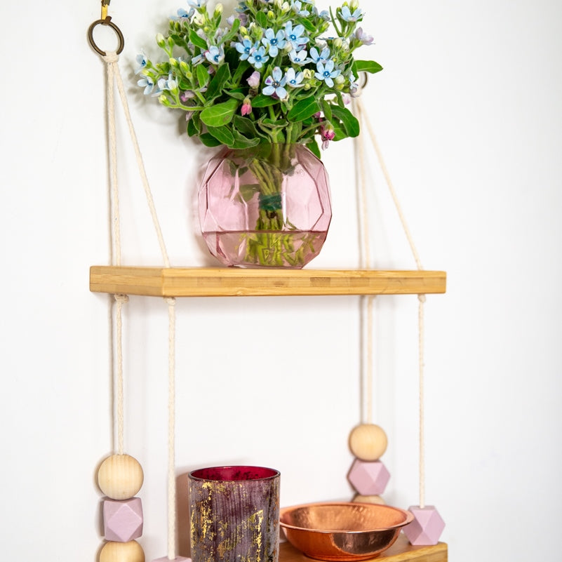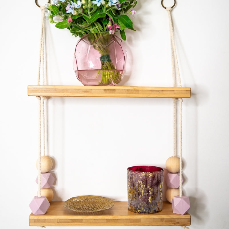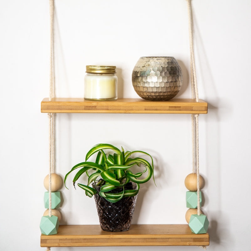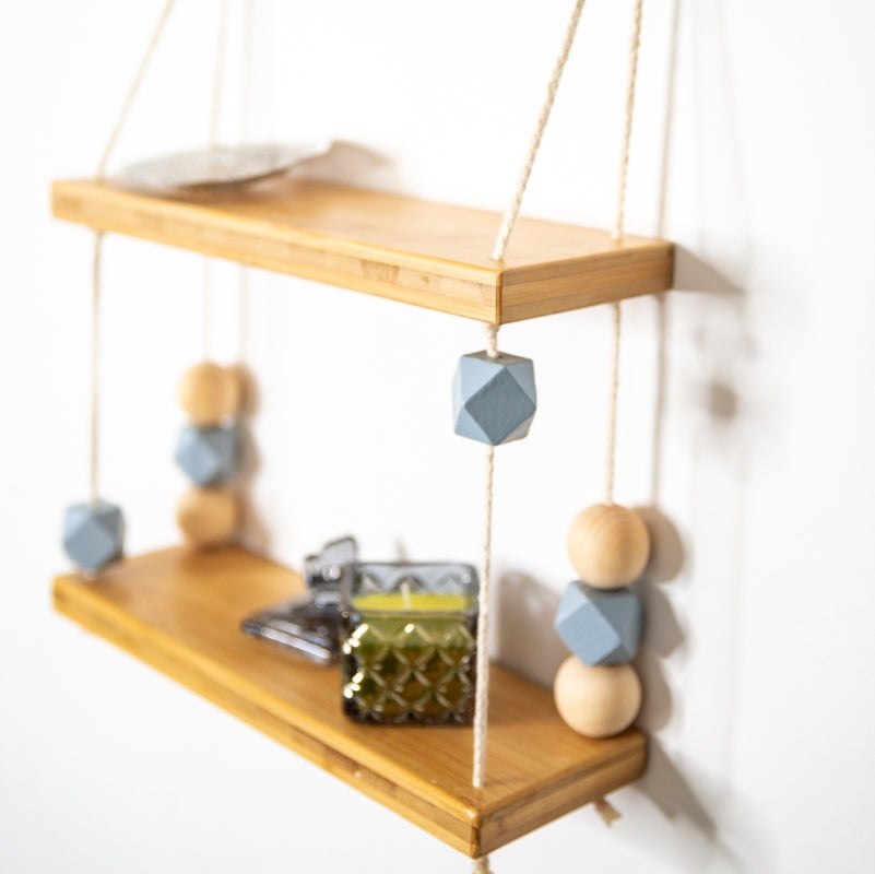 מדף נדנדה כפול עשוי מפלטות של עץ במבוק משובח בשילוב עם חרוזי עץ צבועים