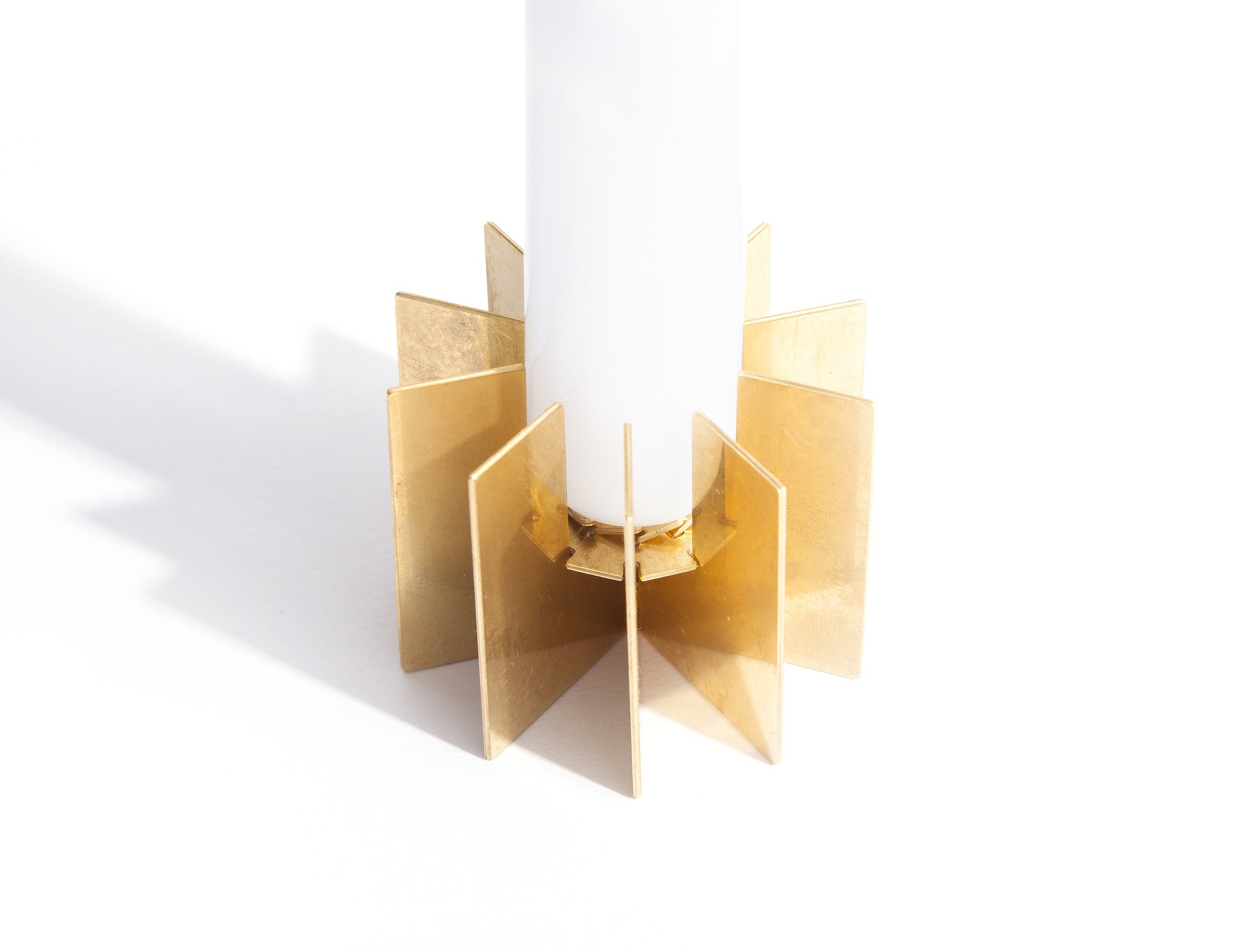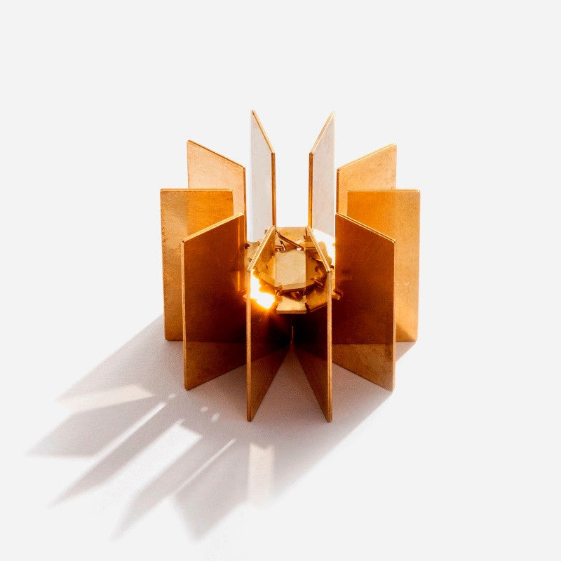פמוט סופר מעוצב העשוי מ 6 פלטות של פליז מבריק ויוצרים ביחד קומפוזיציה שיקית